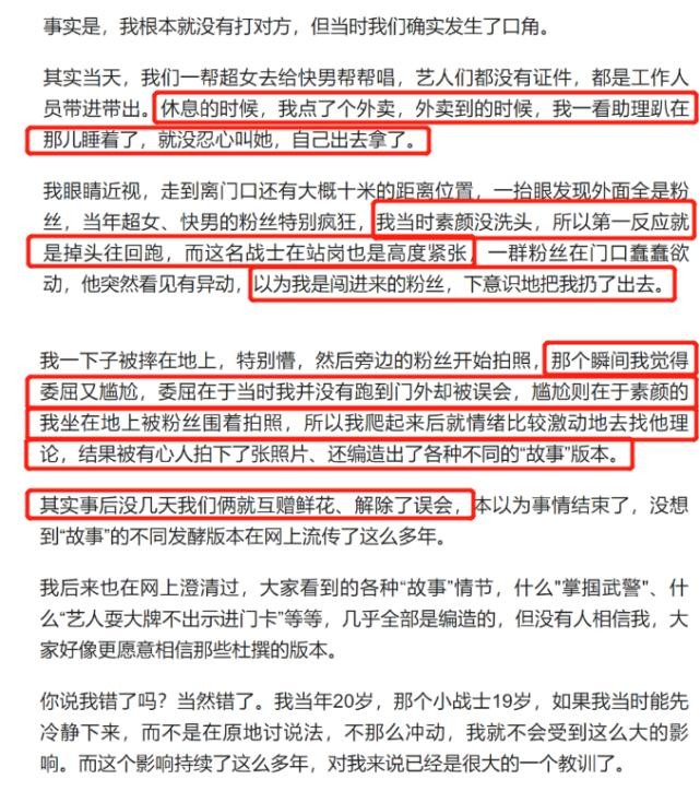 实际上唐笑本人也曾在采访中还原事情经过,她表示自己参加活动没有带着证件,为了帮助理拿外卖素颜走了出去,没想到门口围了一圈粉丝,自己下意识想往回走,这位站岗的武警战士以为自己是闯门的粉丝,随手把自己扔了出去。摔在地上唐笑委屈又尴尬,网友们围成一圈拍照,她于是站起来和对方理论了几句。事实上没过几天唐笑和对方就已经和解,解除了误会,但人们的故事却一直流传至今。