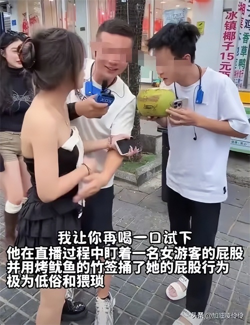 他妄图通过策划一系列低俗行径来达到吸粉引流的目的,特意聘请女子一同合演不堪入目的视频,尤其是用烤鱿鱼竹签骚扰女游客的行为,实在是令人发指。