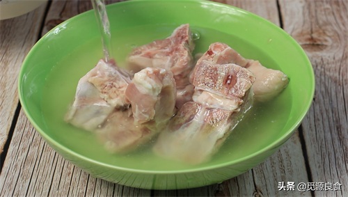 1、在超市购买的脊骨,剁成大块后,用温水清洗干净;