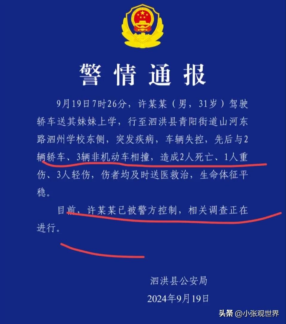 就在今天早上 7 点 26 分,在江苏泗洪县,有个 31 岁的许某某开着车送他妹妹上学,本是高高兴兴送妹妹上学,可谁承想意外来临了。