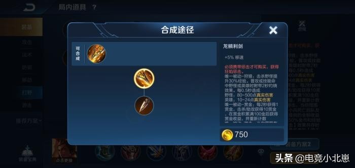<分析>这件新出来的打野刀通常被叫做“黄刀”,也正是这件打野刀彻底改变了打野的格局,带来了“全民打野”的浪潮,因为被动1的存在,很多不能打野的英雄也可以有较快的打野速度,例如芈月,白起,嫦娥等;