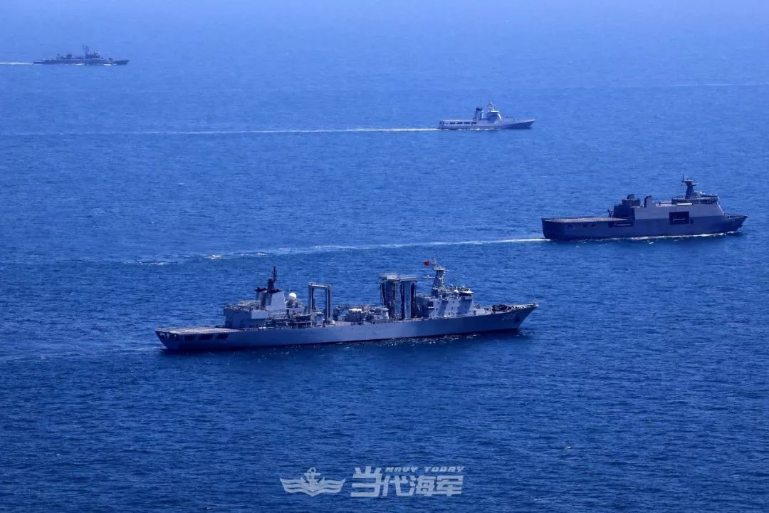 4月26日,参加联演的中国海军综合补给舰太湖舰在演习中。