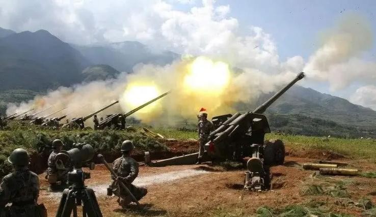 1984年7月,老山,越军集中包括苏联原装M—46在内大口径火炮180余门,组成加强炮兵169旅,配合步兵对老山阵地发动进攻。做为回应,东方古国以85毫米—152毫米口径身管火炮250余门,组成两个炮群应战。一个炮群为步兵阵地提供火力遮断,在预备扰乱性射击中即准备命中越军两个潜伏先遣营的正中,造成两个营长以下的严重伤亡。