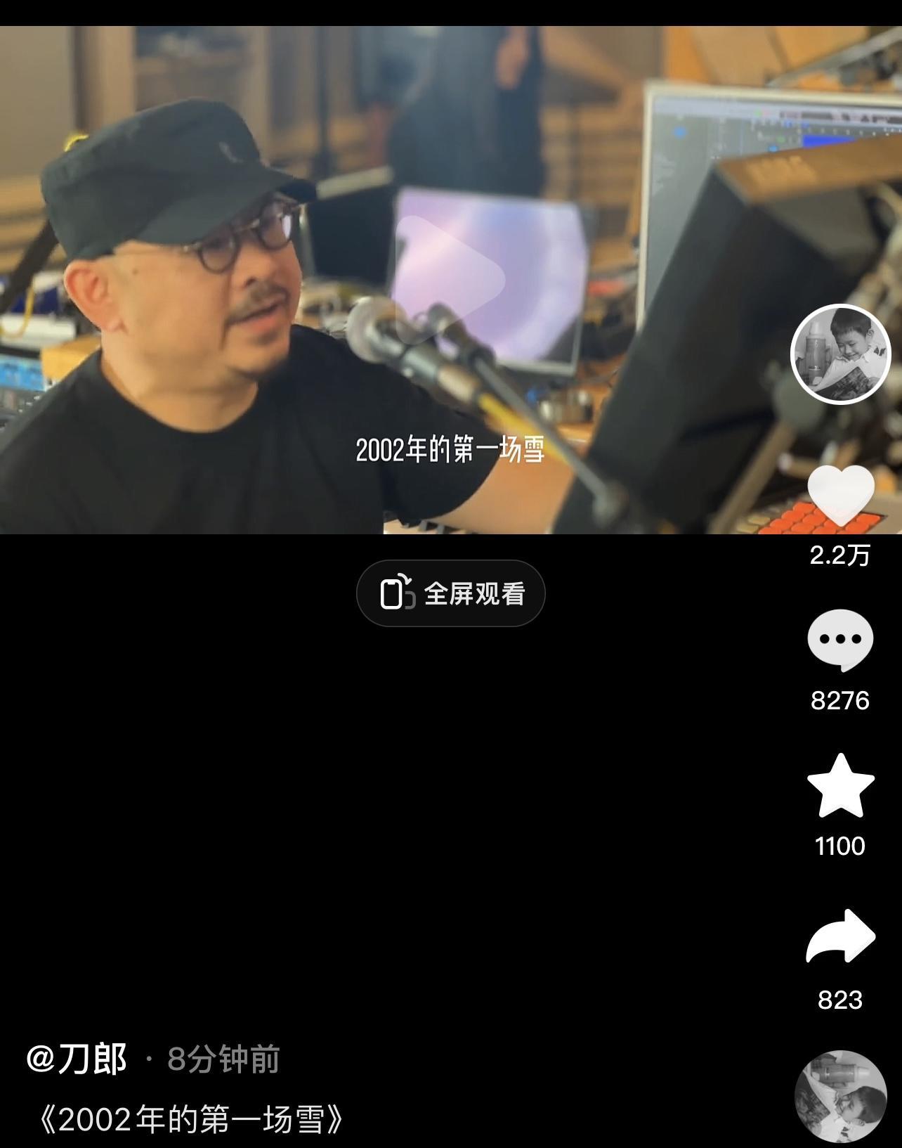 三言科技消息 今日,刀郎在短视频平台终于发布代表作《2002年的第一场雪》。