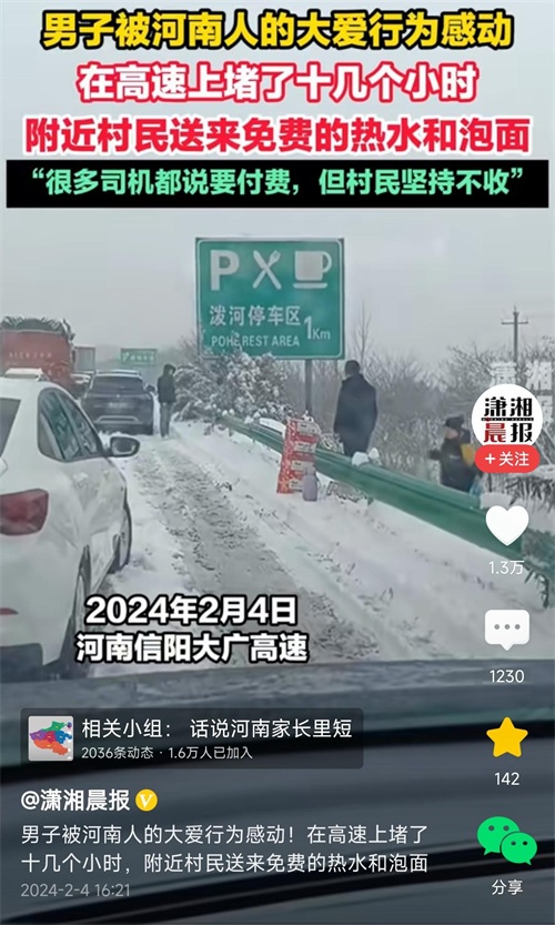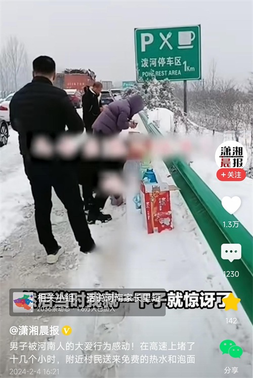 暖哭了!河南高速大雪封路,附近村民争相送食物,评论一边倒