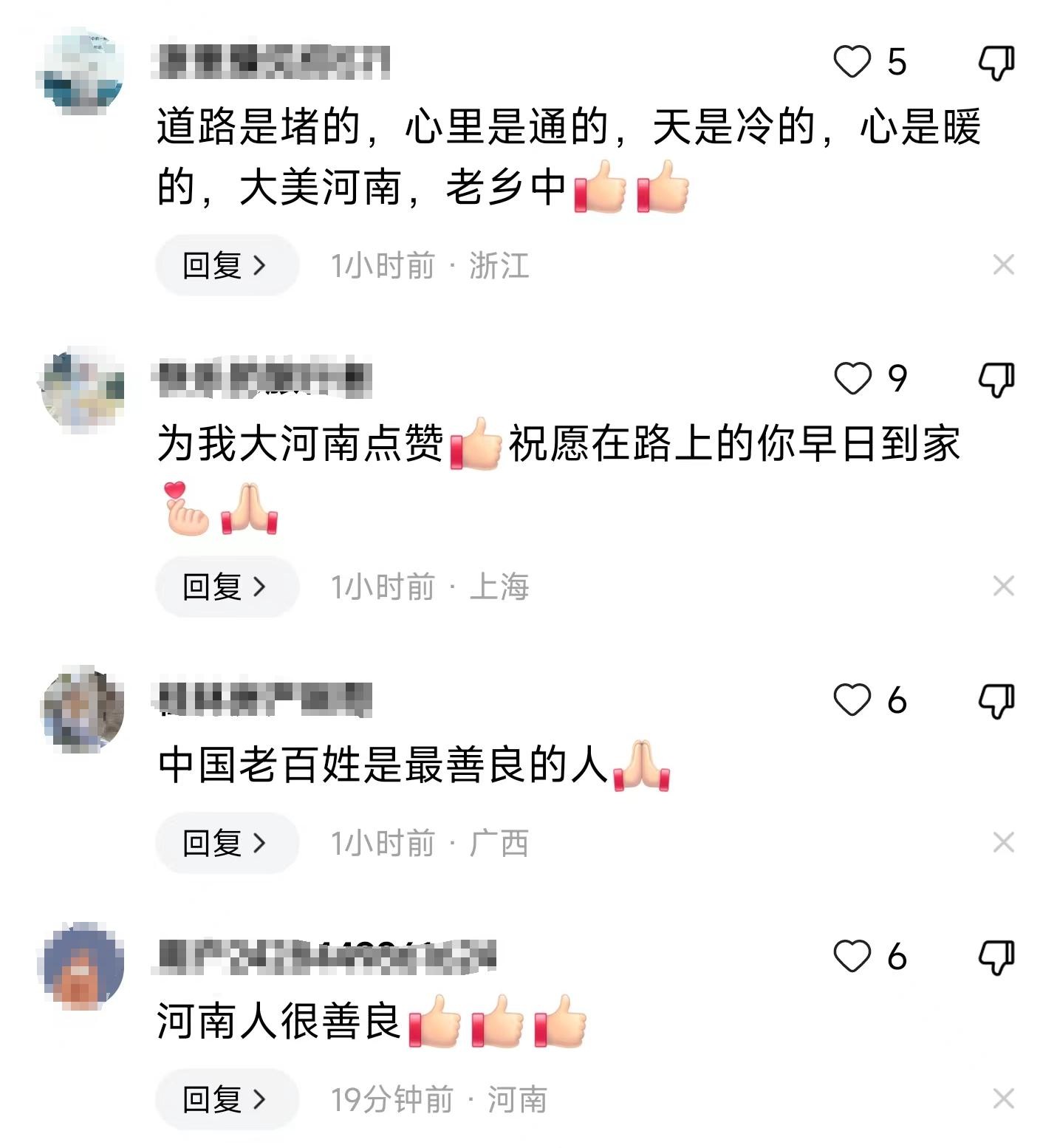 更有浙江的网友表示:道路是堵的,心里是通的,天是冷的,心是暖的,大美河南,老乡中!