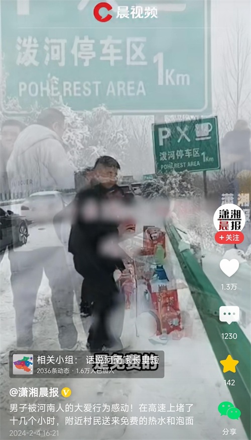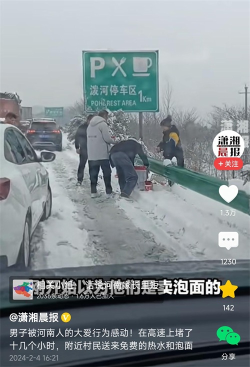 也有的网友评论:为河南人点赞,风雪无情人有情。