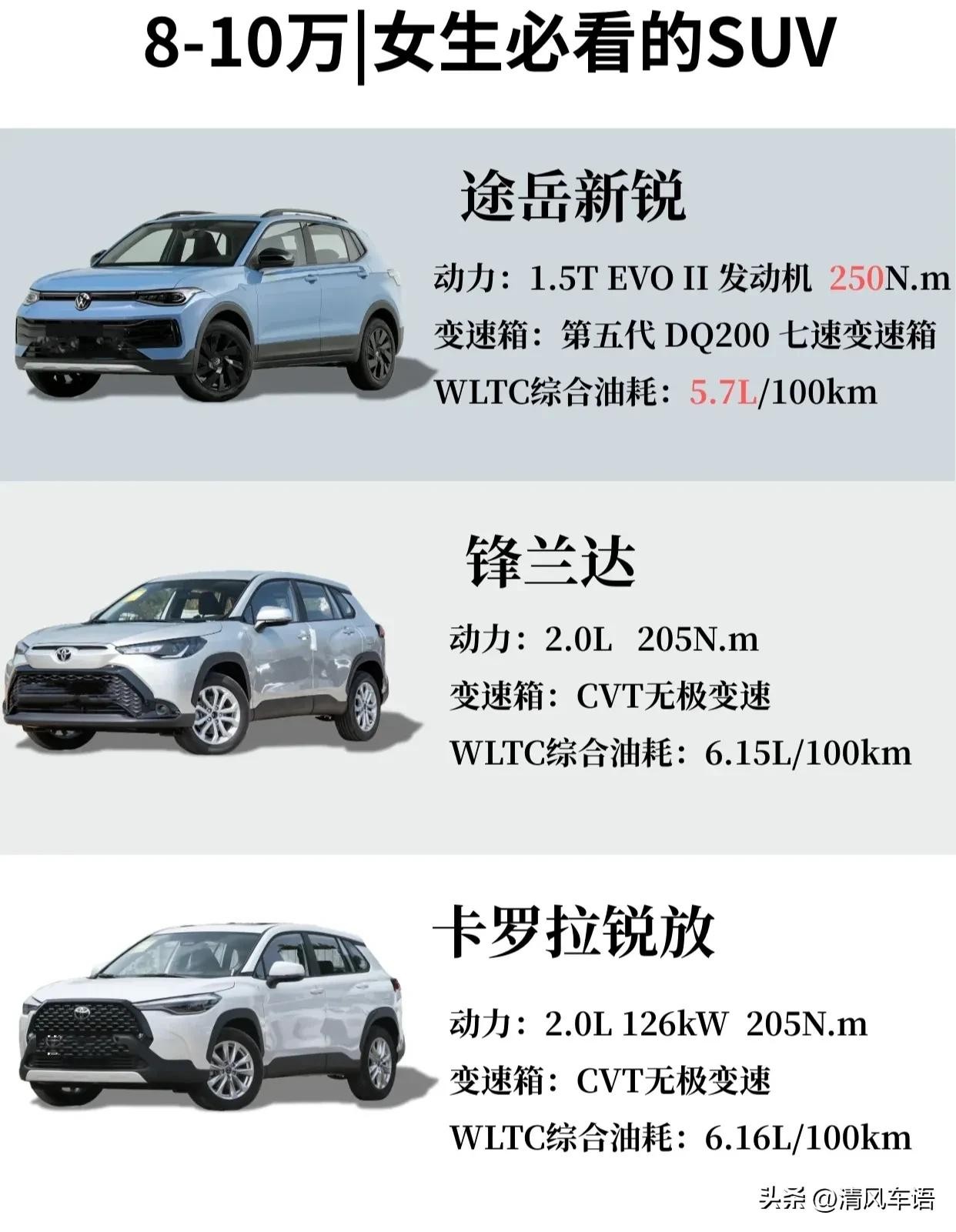 各位精致女孩的出行新宠评选来啦!在油价波动的今天,省油好开、颜值在线的燃油SUV成为都市通勤首选。我们从市场热度、产品力、用户口碑三个维度,精选了途岳新锐、锋兰达、卡罗拉锐放三款当红车型
