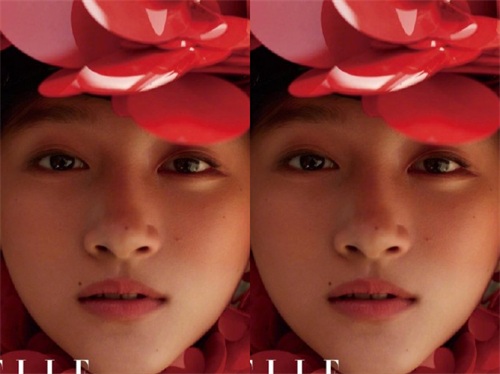 素颜的她大红色同样妥妥能hold的住,这张相片相比起其他就显得比较女人味了,虽然小编也看不出来这究竟是不是帽子,但是类似于花瓣造型的的装饰搭配整个红色调的背景,感觉很是妩媚。