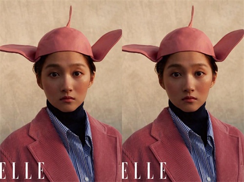 关晓彤全素颜拍封面,脸上的痣清晰可见,2020年首封一身西装杀又飒又美!从图中可以看出,关晓彤穿粉色外套内搭蓝色衬衫,显得复古又清新,不过小编觉得,这个帽子怎么那么像小飞像,或者像猪八戒呢?