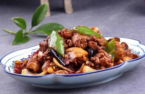 第五步:等锅中的鸡块和土豆都炖软烂,并且锅中的汤汁只剩下一小半之后,我们再把切好的青辣椒倒入锅中,继续翻炒均匀,翻炒1分钟左右,我们再把中小火转换成大火,一直将锅中的翻炒浓稠之后,就可以起锅装盘了。