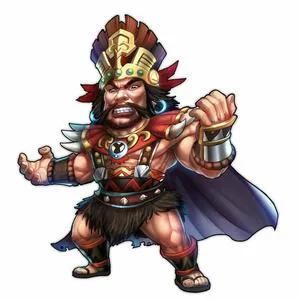 孟获身材魁梧高大,犹如一座巍峨的山峰,给人一种强烈的压迫感。他那宽阔的肩膀仿佛能扛起整个南中的天空,粗壮的双臂好似能轻易折断坚韧的树枝。一张古铜色的面庞,饱经风霜,刻画出岁月的痕迹,浓密的胡须如钢针般根根直立,尽显粗犷豪放。深邃的眼眸中,时常闪烁着坚毅和果敢的光芒,仿佛燃烧着永不熄灭的火焰。