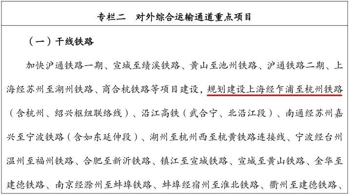 今年,这条高铁线路更是被列入国家发改委《长江三角洲地区交通运输更高质量一体化发展规划》,而且跻身「干线铁路」。