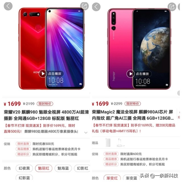 荣耀V20与荣耀Magic 2综合对比,选谁一目了然