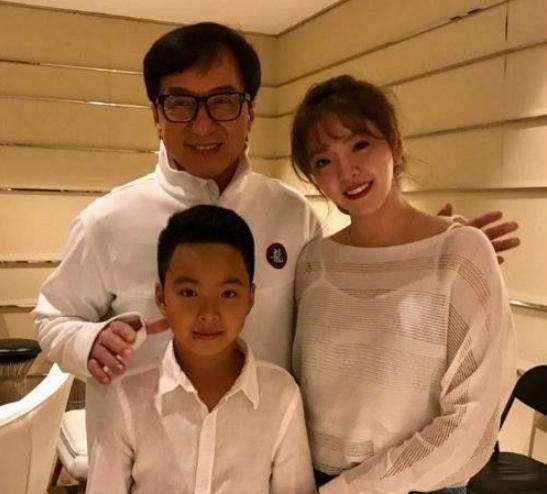 成龙和王中磊的女儿王文也合影,手离肩膀都好远。
