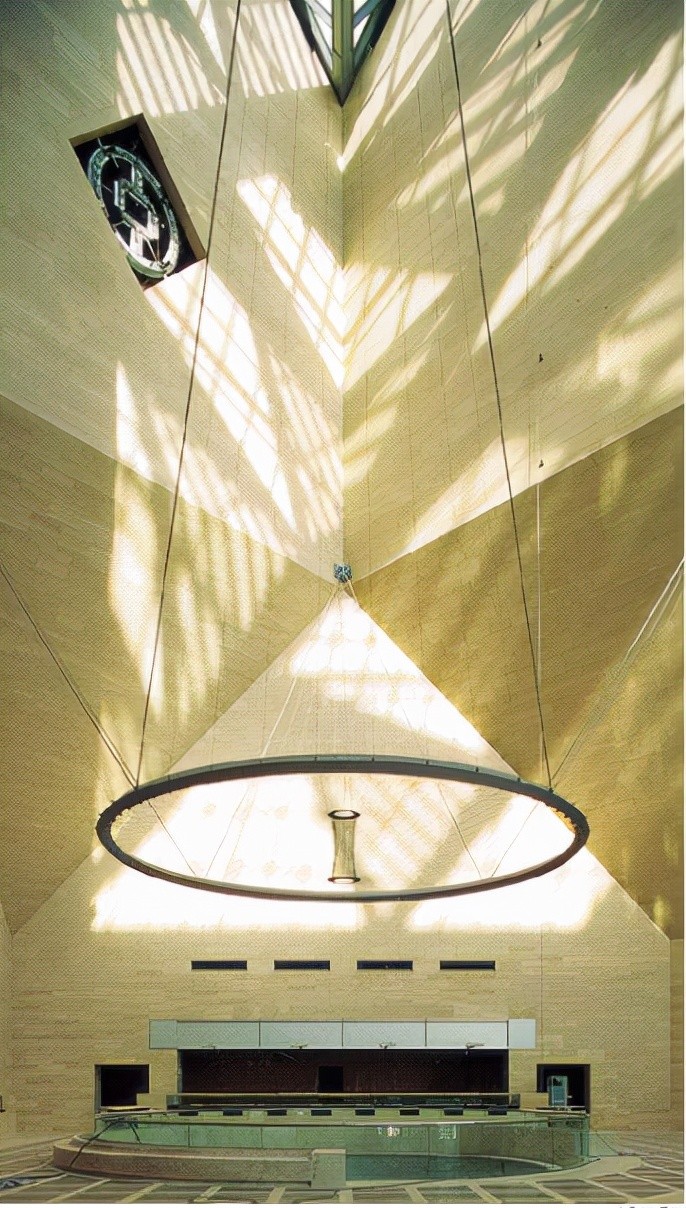玻璃与钢架的结合,虽不能说是贝氏的特点,但也算是他常用的手法。钢架与阳光的结合不知巧合还是故意为之,光下的投影充满了宁静、幽深神秘的感觉。