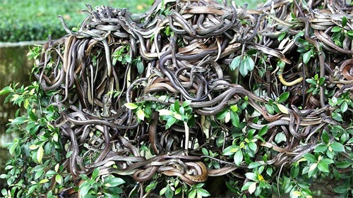 这个岛上号称每一平米就有一条蛇,岛上起码有上千种毒蛇。是数千条毒蛇的家园,包括世界上最致命的蛇之一——金矛头腹蛇。