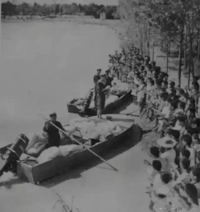 8月9日清晨,人民解放军某部飞速向驻马店推进,公路上车轮滚滚,满载救灾物资的汽车翻山越岭,风雨兼程。洪水中,一艘艘船只、救生艇破浪而行,逆流而上。