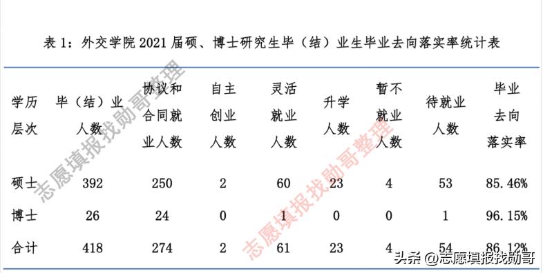 勋哥回答:今天这篇文章,专门回答这两个个问题。如果把本科就业升学的情况和研究生升学就业情况,进行对照,或许更能清楚的看到外交学院的优势和强大。