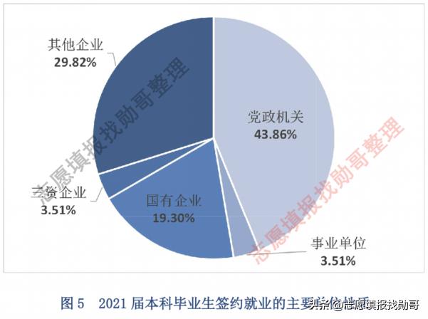 2、2021届本科毕业生签约就业单位的性质中,43.86%党政机关,19.30%国有企业,3.51%事业单位, 妥妥的体制内就业的王者。!