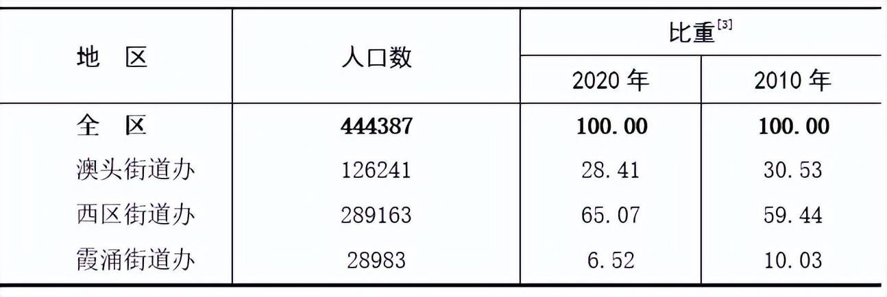 根据2020年第七次全国人口普查数据显示,截止2020年11月大亚湾常住人口444387人,比六普时增加251901人,增长幅度为130.87%。