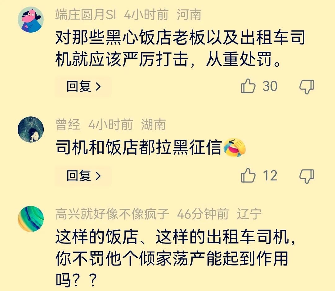 出租车司机与饭店相互勾结,通过回扣的方式吸引游客,然后在菜品价格和分量上做文章,以此来获取高额利润。这种行为不仅严重损害了消费者的合法权益,也对其他诚信经营的商家造成了极大的冲击,扰乱了整个旅游市场的竞争秩序。