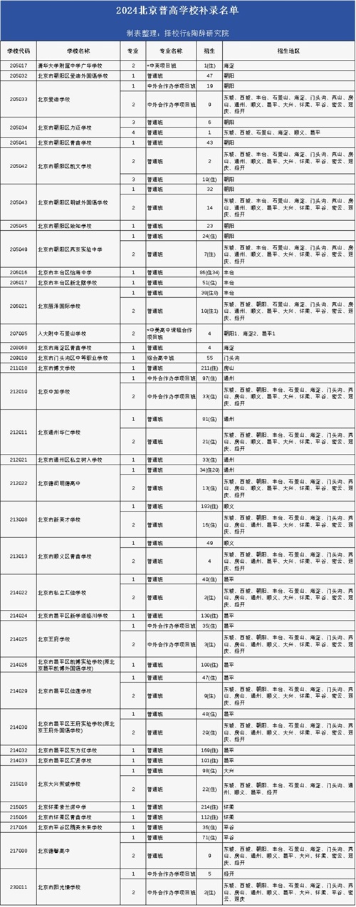 今年,补录机会最多的学校为房山区的北京市博文学校,目前有211个补录名额。