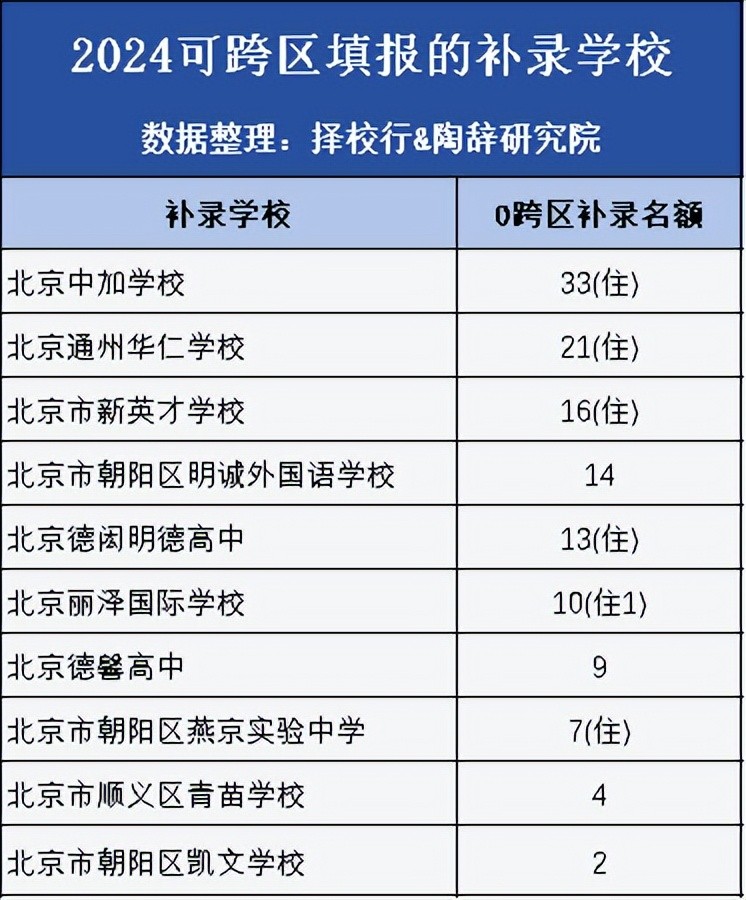 可跨区补录的学校名单如下: