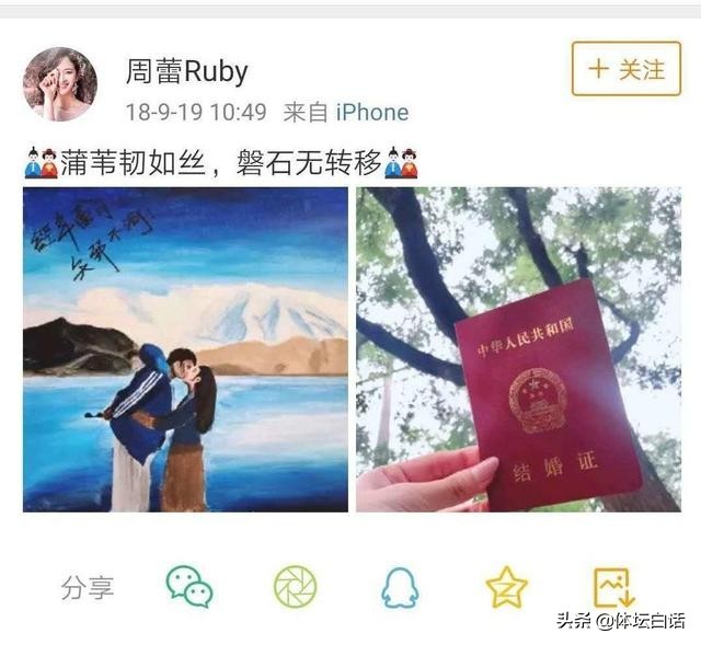 在2018年9月份,周蕾曾晒出了一张手持结婚证的幸福照片,这个动态是她幸福的见证,一直保留了2年多的时间,如果婚姻幸福,相信会永远保留下去,而近日再次查看时发现证件照已经消失不见,而且这个动态前后日期的动态都依然存在,说明周蕾特意删除了这一条。