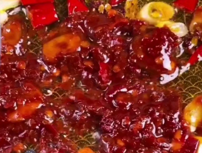 另起锅,油热后放入葱、姜、蒜、麻椒、干辣椒、炒出香味,放入豆瓣酱炒出红油