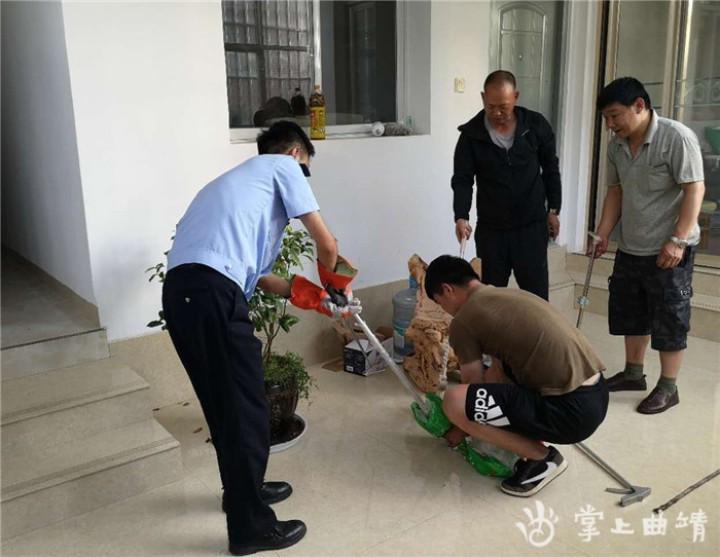 8月4日晚18时25分,会泽县公安局森林警察大队接到县古城街道办事处翠屏社区1组村民陈某惊慌的电话举报,称其院内刚刚爬进来了一条1米左右长的黑麻蛇,恐其伤人,家人都害怕不已,请赶快前往处置。接报后,森警大队民警立即出警,利用捕蛇工具,娴熟地把这条惊扰村民的麻蛇成功“擒拿”。