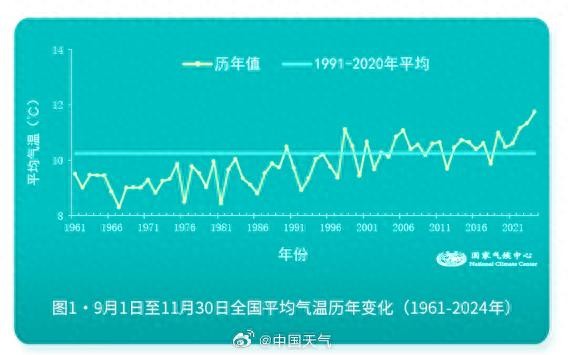 据国家气候中心消息,今年秋季(9月1日至11月30日),全国平均气温为11.8℃,比常年同期偏高1.5℃,为1961年以来历史同期最高。全国大部地区气温偏高1~2℃,其中华中中部、华东中部、西南地区东北部、西北地区南部等地偏高2~4℃。辽蒙津晋陕甘青豫苏皖浙沪鄂川渝贵16省(区、市)平均气温均为1961年以来历史同期最高,宁冀鲁闽赣湘粤云藏9省(区)为次高。