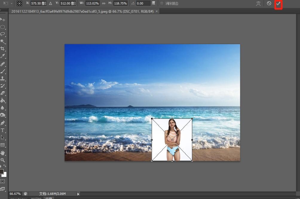 3.拖入后,通过白色正方形调整图片大小到合适的位置。