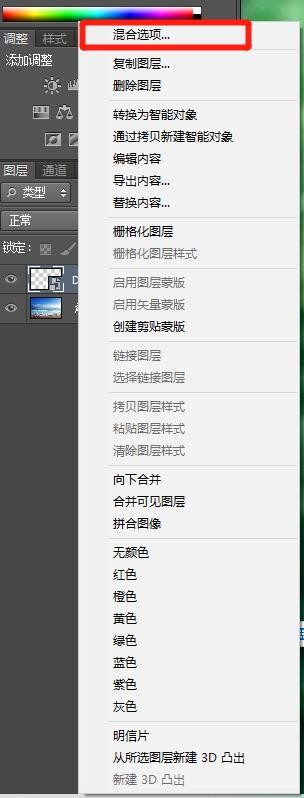 5.鼠标右键背景图层上面的图层,选择混合选项。