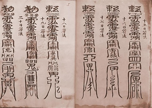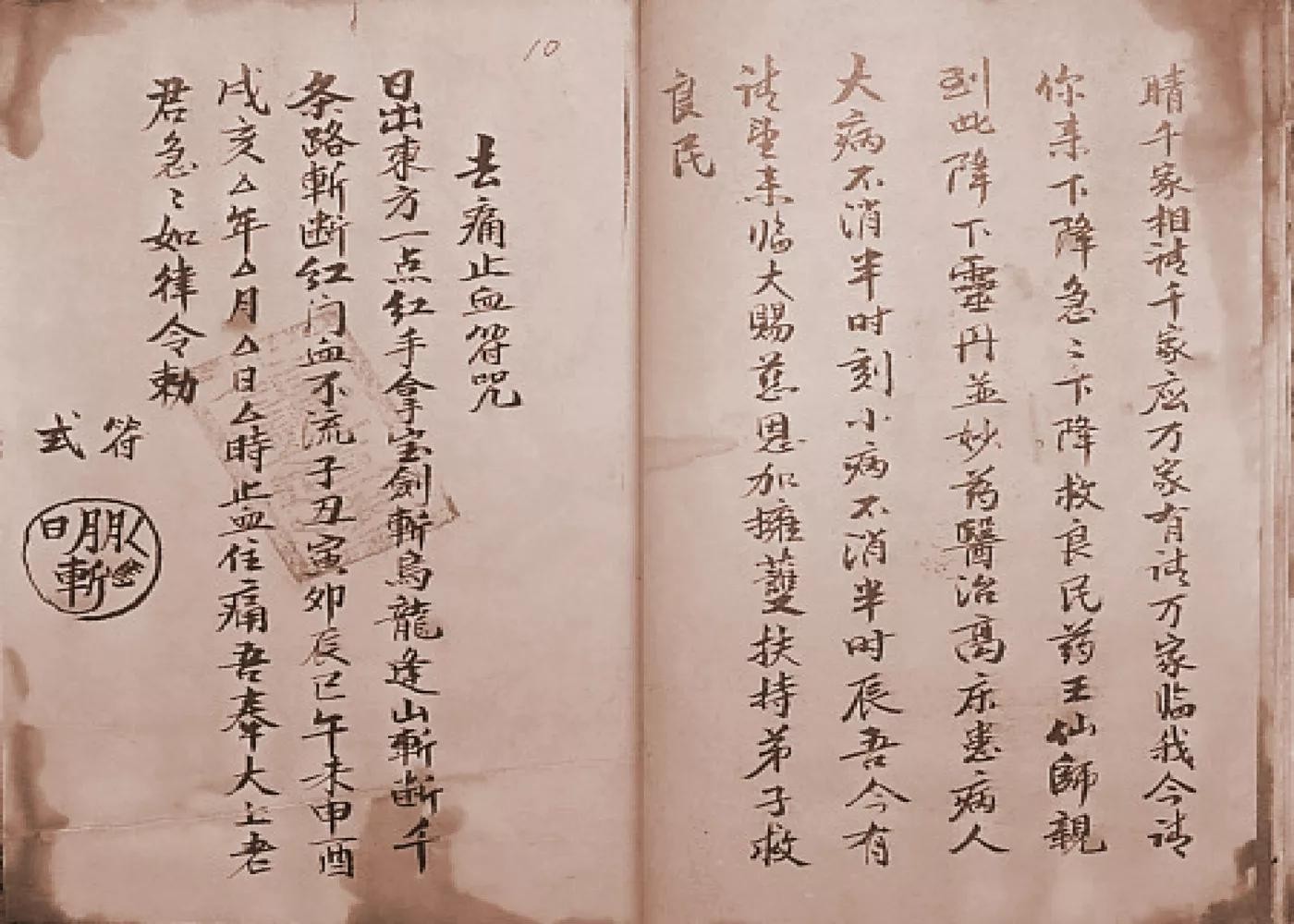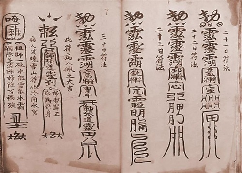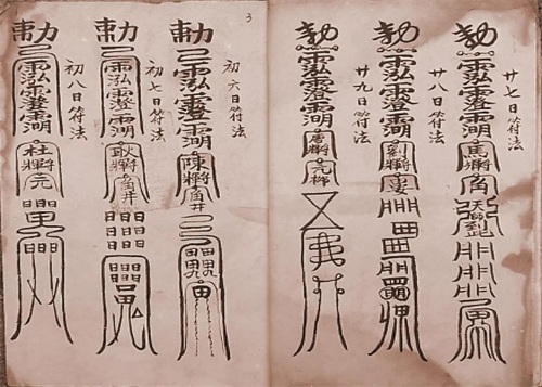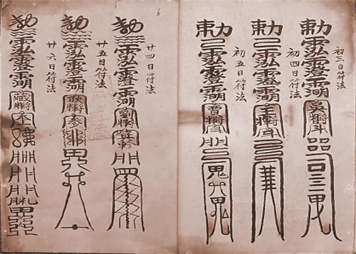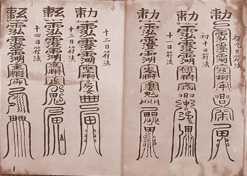 民国时期抄本,民间道教古籍。咒符之藏身躲影法。