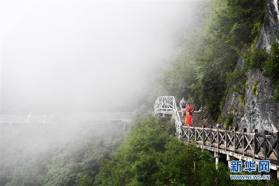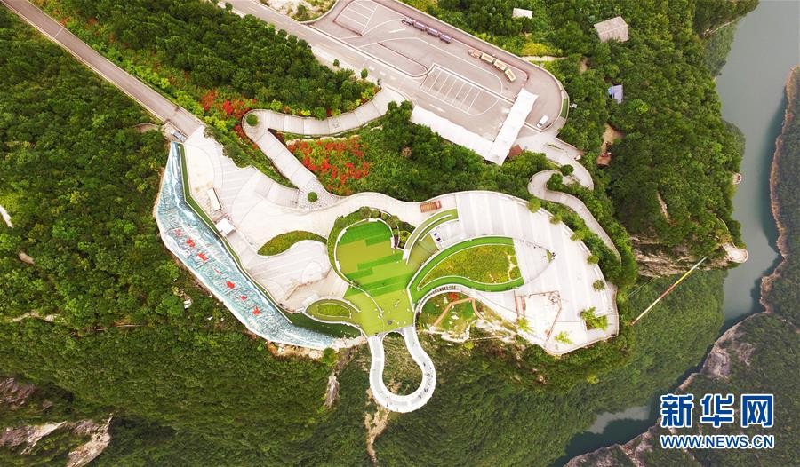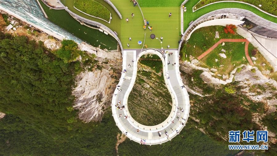 这是7月30日无人机航拍的龙缸国家地质公园云端廊桥。新华社记者 王全超 摄