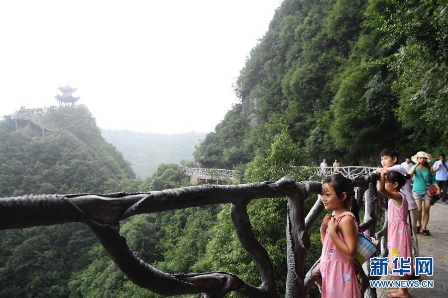 7月30日,游客在云阳龙缸国家地质公园游览。新华社记者 王全超摄