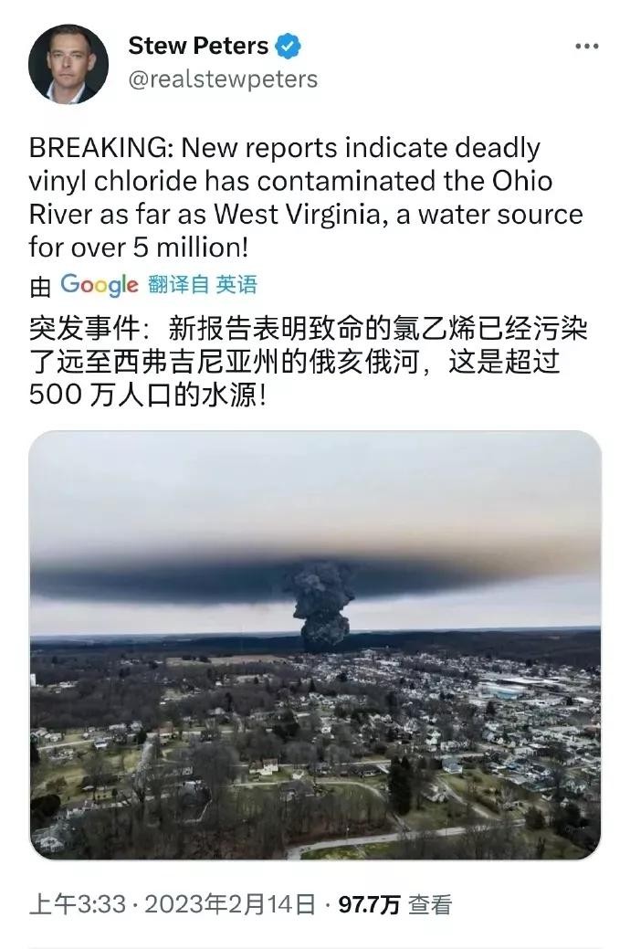 俄亥俄泄露事件不仅对俄亥俄造成了巨大损失和影响,同时也对美国以及全人类造成了不可逆的影响,未来将癌症比例也会持续上升,正如网友所说:天上聚乙烯,海里核废水。以后的人类是否还会有一片净土呢!!!#美国##俄亥俄##聚乙烯泄露##环境污染#