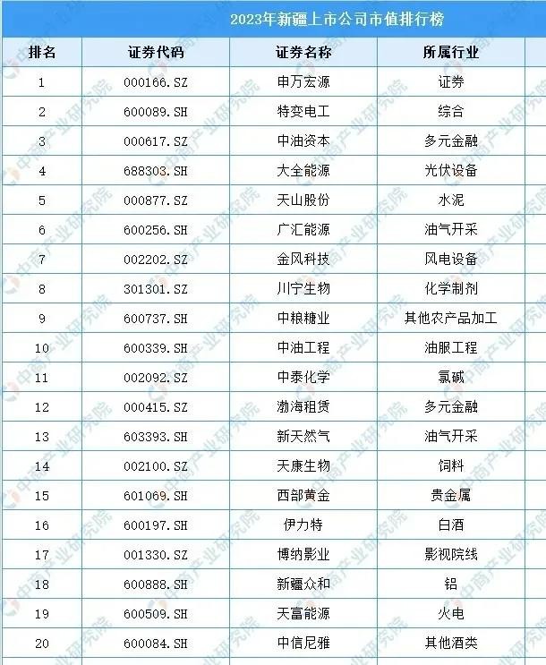 新疆的上市公司一览
