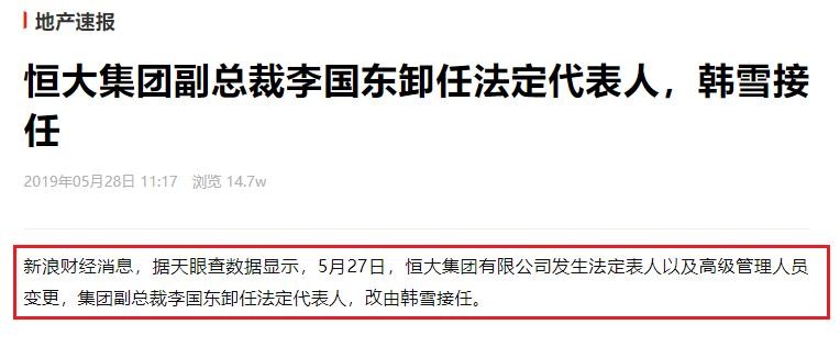 简讯:恒大的法定代表人