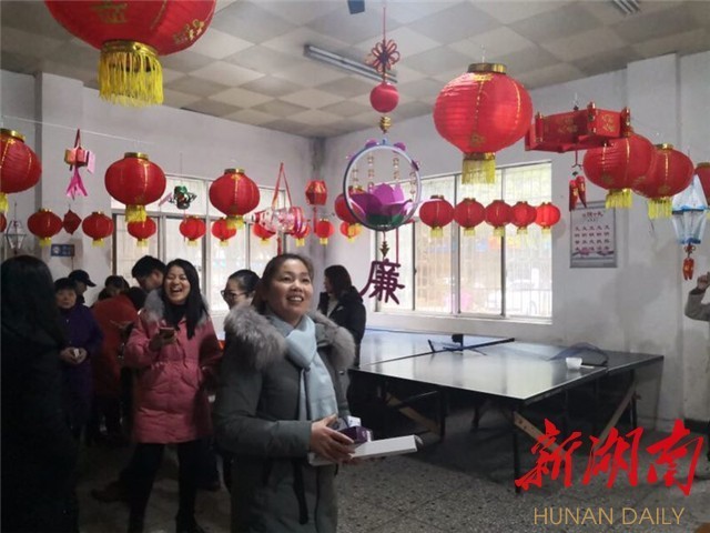 2个小时左右,32个形态各异、喜庆洋洋的灯笼闪亮登场,这些都是社区党员、居民、志愿者从家里自带的废旧、闲置物品制作完成的。将灯笼和五彩飘带一一挂好后,室内顿时喜气洋洋。“我的这个灯笼叫‘福满猪年’,是由大号矿泉水瓶做的,是今天的一等奖呢”, 看着这些由废旧物品做成的神采奕奕“高大上”作品,老党员高强掩饰不住喜悦。