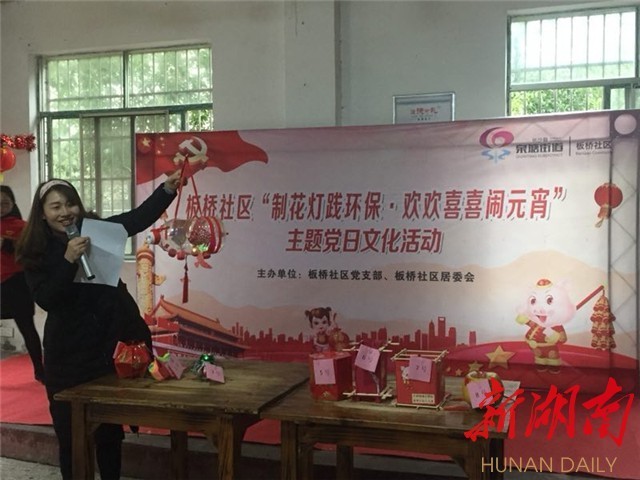 湖南日报·新湖南客户端2月18日讯(通讯员 杨妹)今日下午,长沙县泉塘街道板桥社区文体中心内热闹非凡,安置小区的居民们齐聚一堂,参加“制花灯践环保·欢欢喜喜闹元宵”主题党日文化活动,做灯笼,品元宵,共度元宵佳节。
