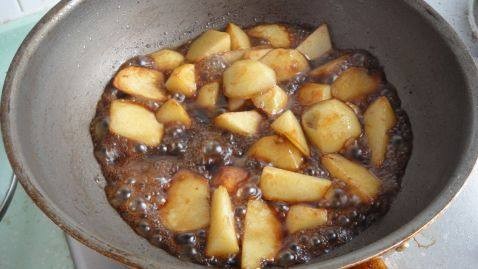 土豆煎炸至表面金黄,8成熟。 这个比例的糖醋汁可以用来做任何糖醋口味的菜。很不错。