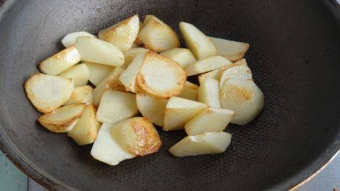 3煎炸至土豆表面焦黄。