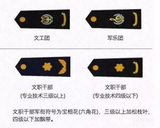 文工团、军乐团及文职干部军衔,如下图所示