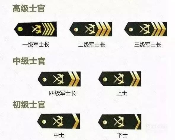 解放军军衔通常由将官、校官、尉官、准尉、士官、士兵构成其等级体系,以置于肩、领或袖、帽等处的专门徽章符号,标志军人的军衔等级和所属军种、兵种及专业勤务。