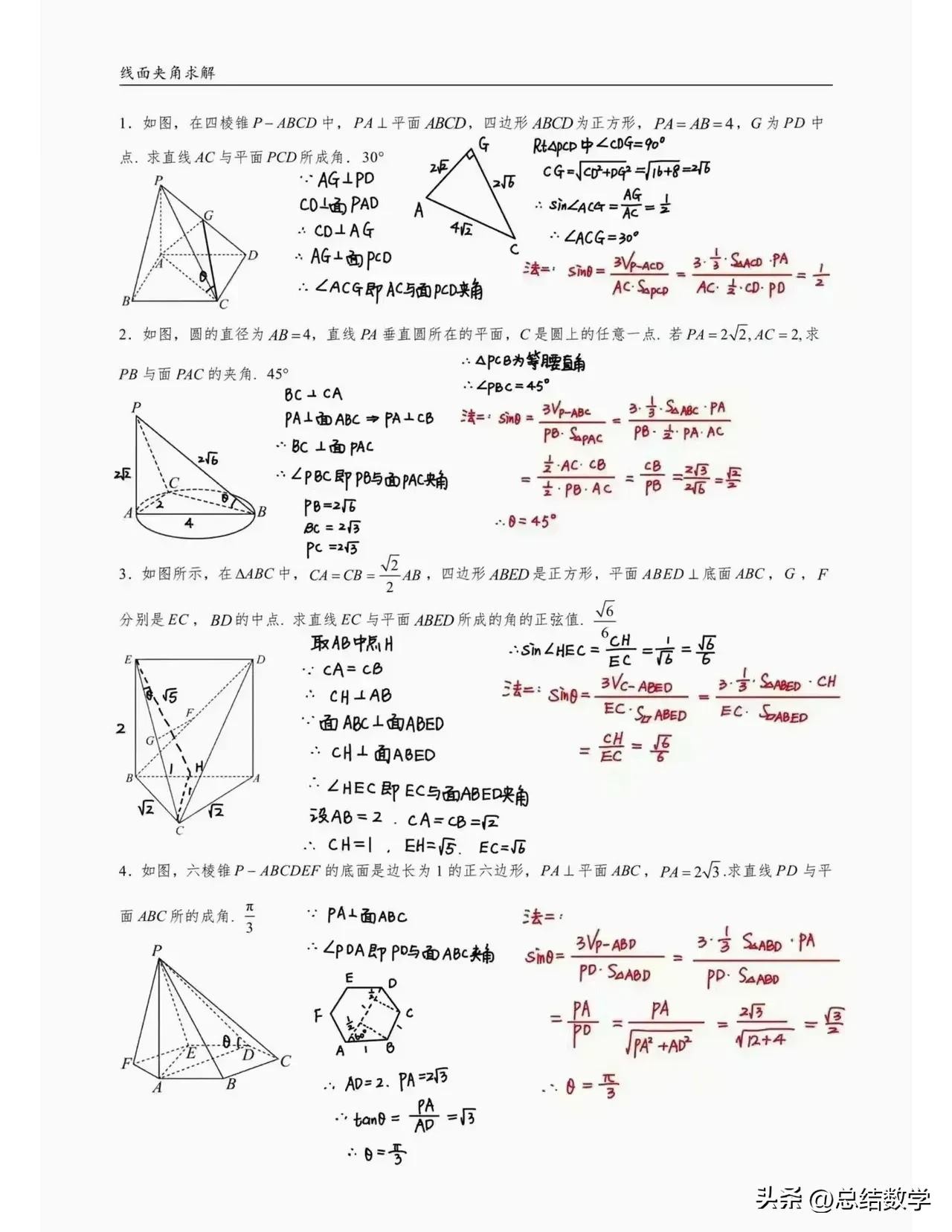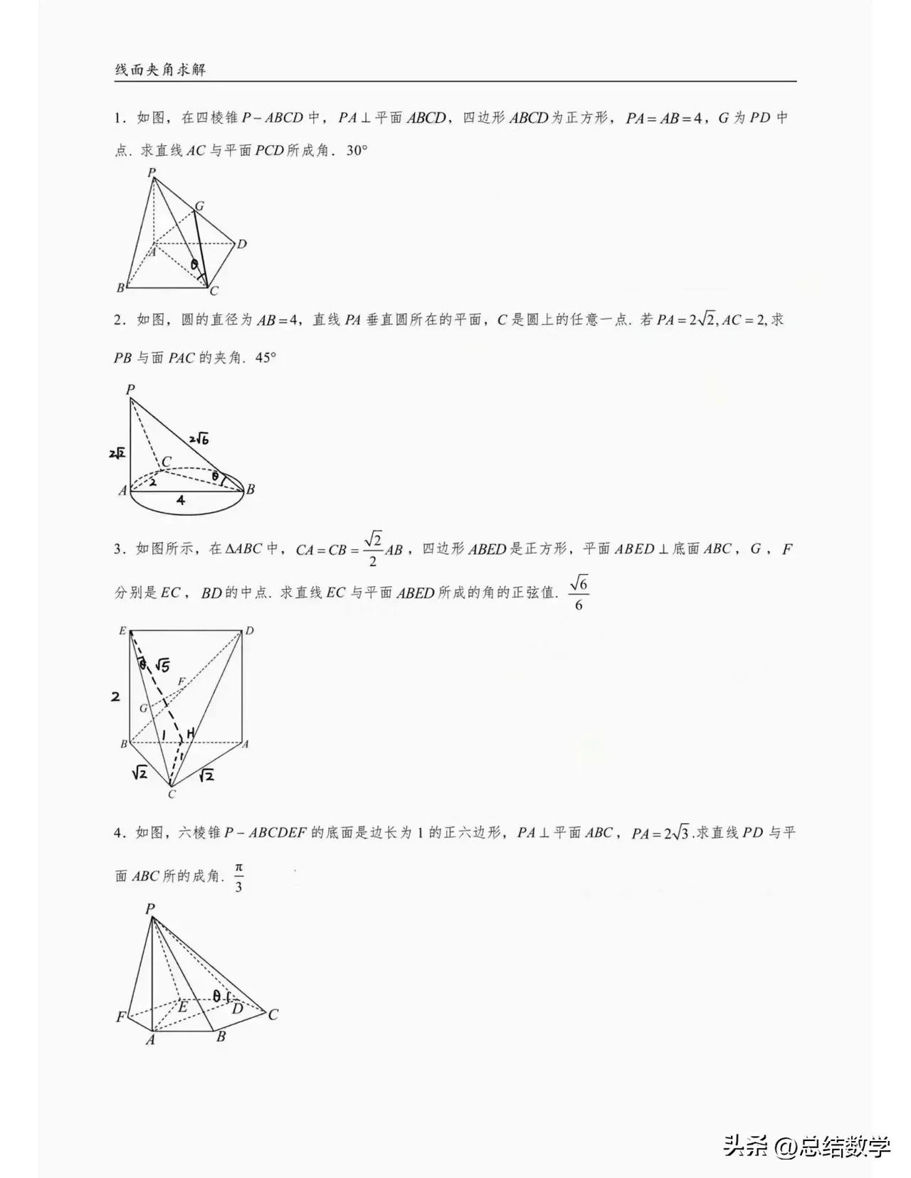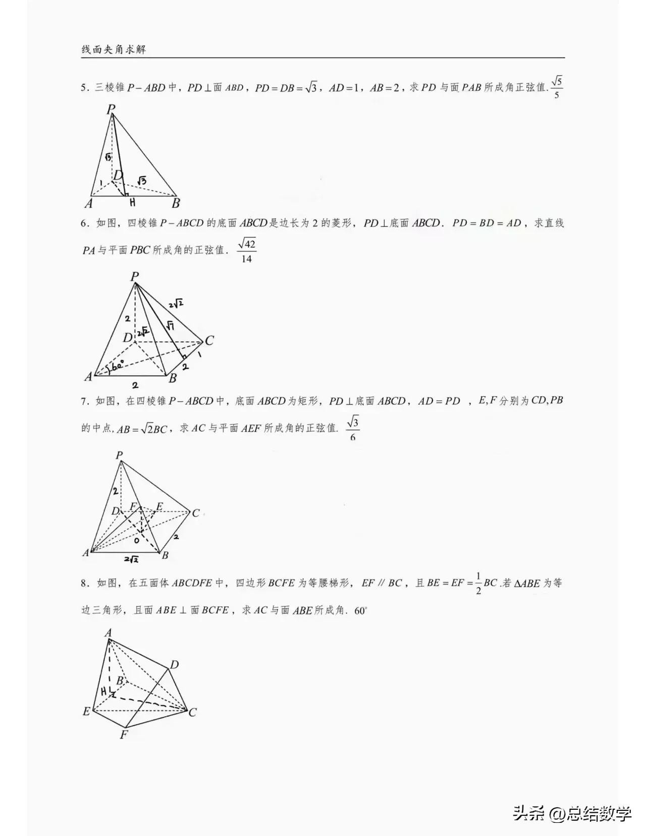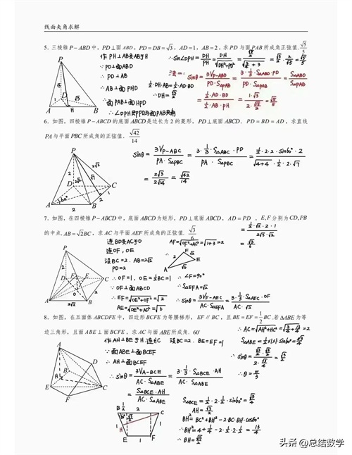 深入探讨立体几何线面夹角例题