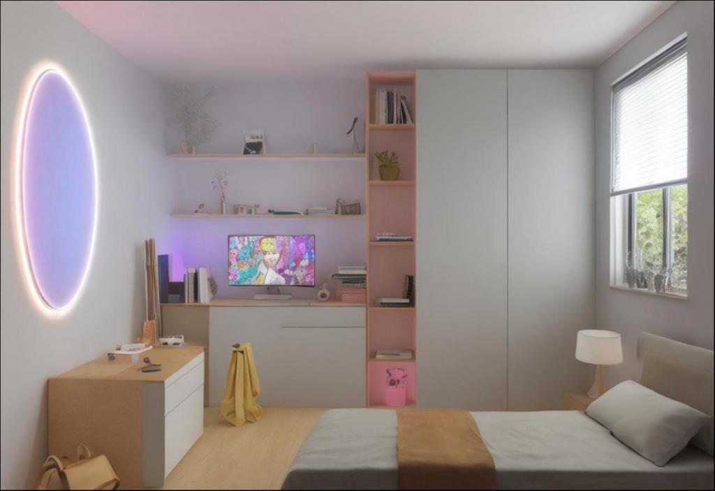 但对于当下的年轻人来说,家中空间的划分往往会依照应用场景搭建,而不是固定的地面区域。比如客厅既可以举办家庭聚会同时也能兼顾健身房的功能,甚至可以把客厅空间取消,转换成为宠物区、手办陈设区等等。同样的,卧室既可以休息,也能被打造成周末的 " 私人影厅 "。