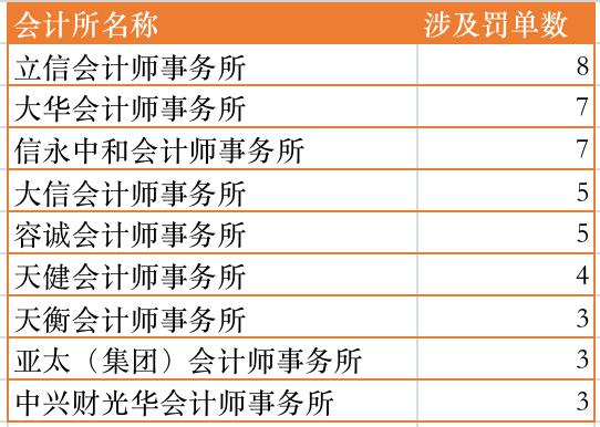 今年以来涉及罚单数最多的会计师事务所。制表:时代周报。数据来源:证监会、各地证监局、上交所、深交所、北交所官网