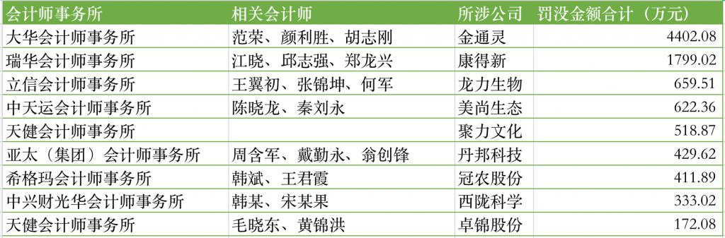 5 月 10 日,由于在审计金通灵(300091.SZ)公司财务报表时未能履行勤勉尽责义务,大华被江苏证监局处罚,被暂停从事证券服务业务 6 个月,且被处以没收业务收入 688.68 万元,并处以 3443.40 万元罚款。相关的 3 名大华会计师也分别被处以 150 万元、80 万元、40 万元的罚款。